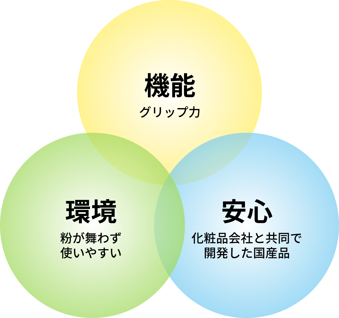 化粧品メーカーと共同開発した国産処方を採用。 敏感肌の方でも使いやすく、毎日のトレーニングを快適にサポートします。