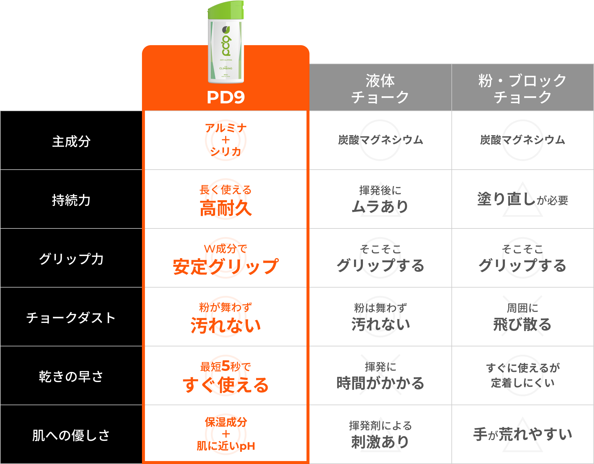PD9は、手に伸ばすだけで素早くグリップ力をアップ。 面倒な工程は一切なく、初心者でも直感的に使えるシンプル設計です。