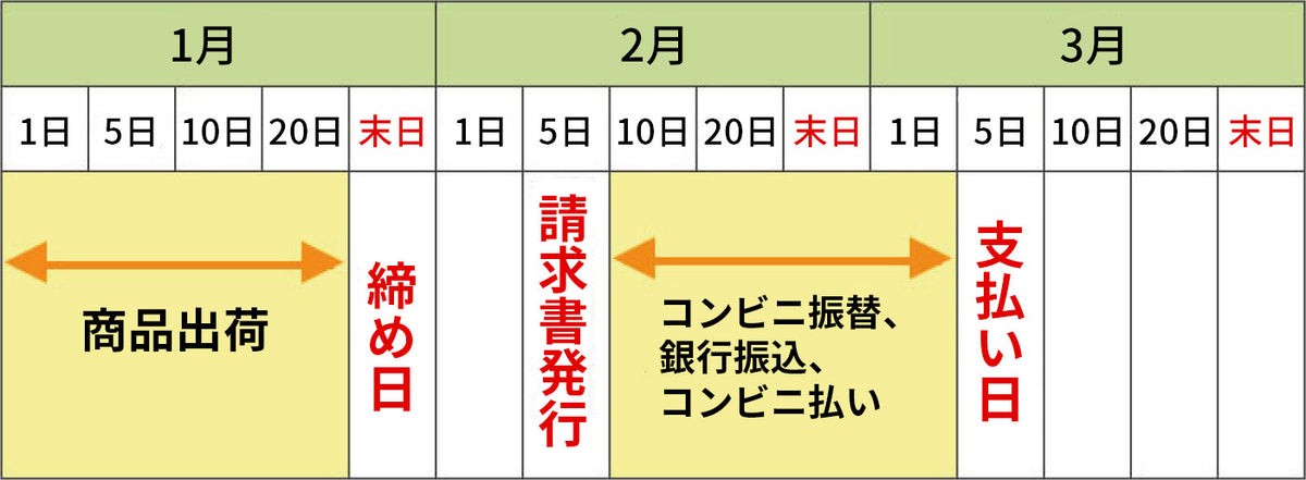 請求書送付日:月末締めの5営業日後に郵送