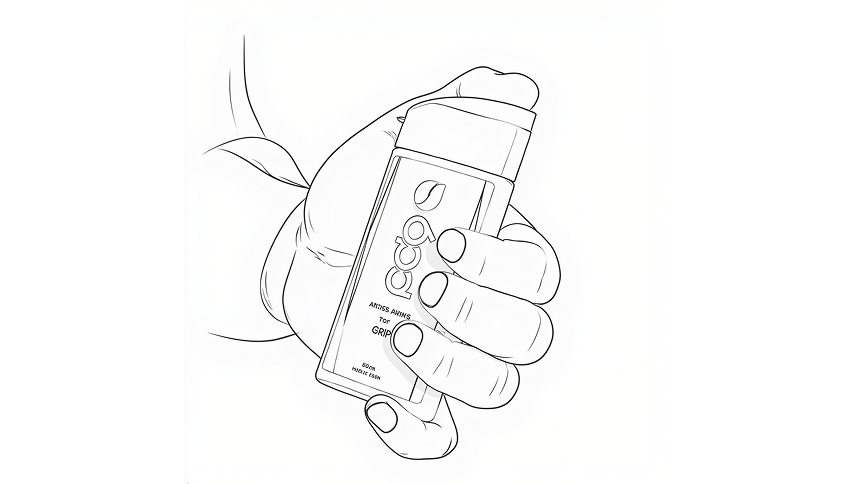 中の混ぜ玉がカチカチと5回鳴るまでしっかり振り、成分を均一にします。粘度が低く手に取りやすく、乾くと透明になります。
